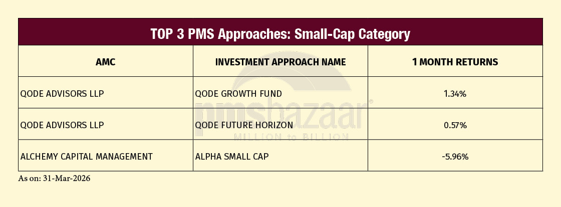 What makes this category stand out is not just the average performance, but the top-end protection delivered by a few managers. Qode Advisors’ Qode Growth Fund was the best-performing equity PMS across the entire PMSBazaar study, gaining 1.34 per cent in a month when the market fell more than 11 per cent. Qode Future Horizon also stayed in positive territory with a 0.57 per cent gain. That two small-cap strategies generated positive returns in such a month is striking and points to highly differentiated stock selection and portfolio construction.