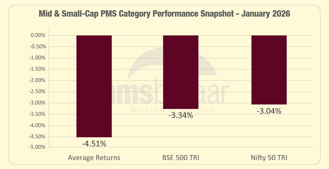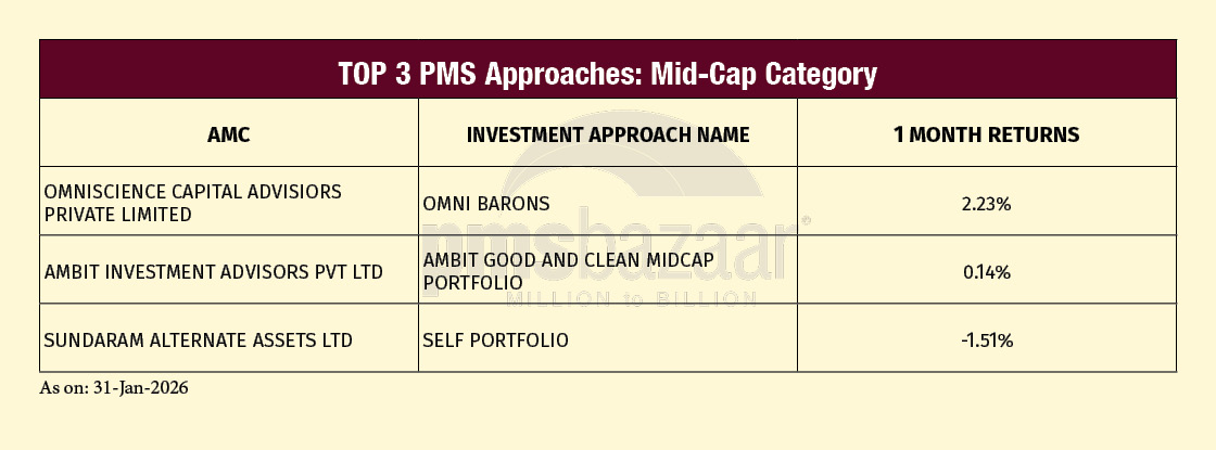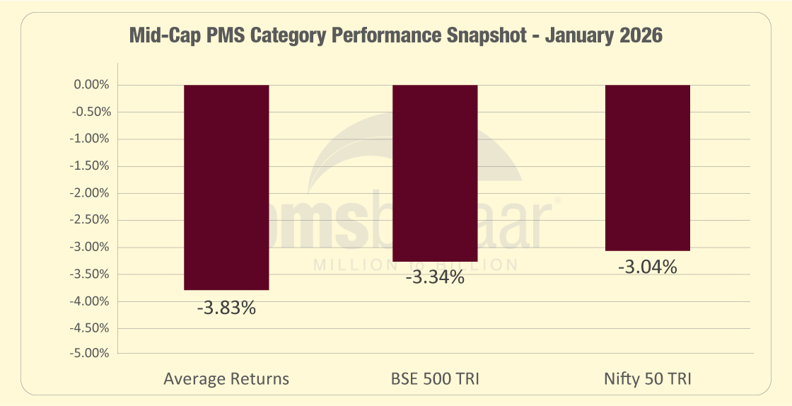 Midcap PMS strategies were under sharper pressure in January 2026, with the category averaging a deeper drawdown than the headline indices.