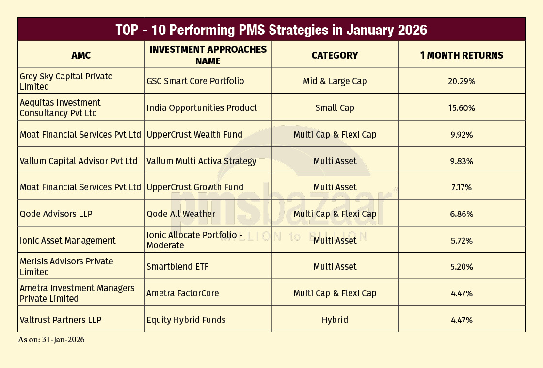 Here is a more detailed review of January-2026 return across PMS strategies.