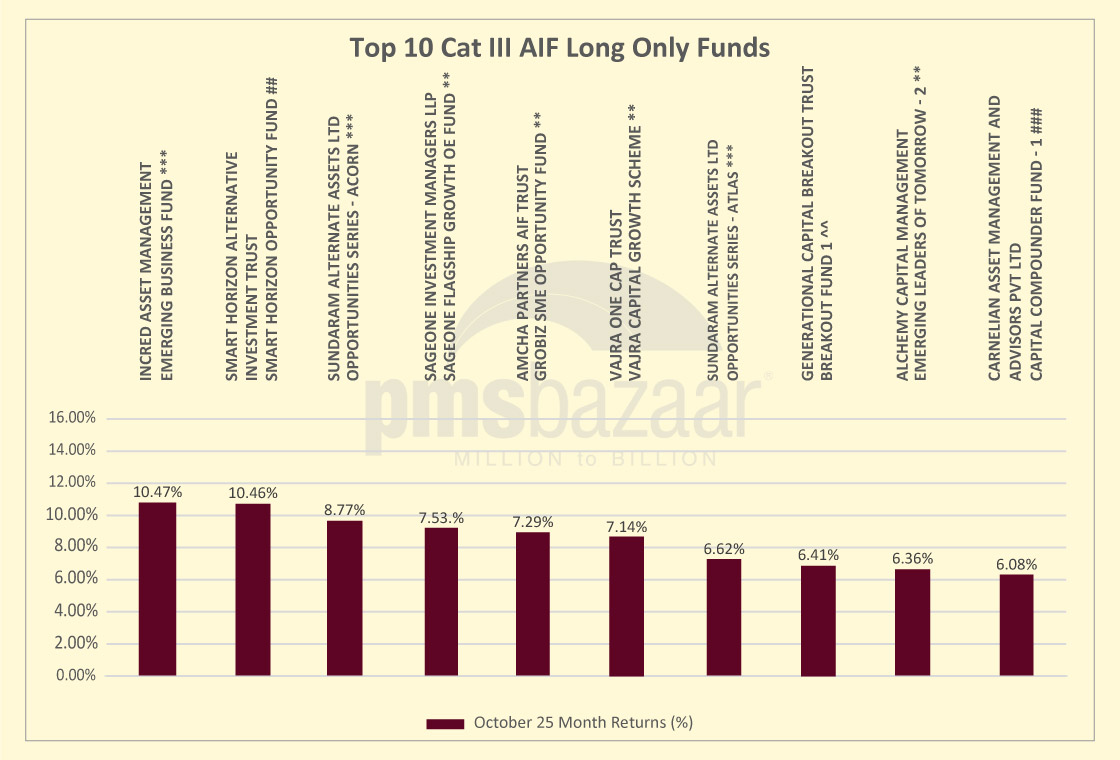 The mid-tier of outperformers included Vajra Capital Growth Scheme (7.14 per cent) and Sundaram Alternates’ Opportunities Series – Atlas (6.62 per cent), both benefitting from diversified exposure across mid- and large-cap leaders. Rounding off the top ten were Generational Capital’s Breakout Fund 1 (6.41 per cent), Alchemy Capital’s Emerging Leaders of Tomorrow – 2 (6.36 per cent), and Carnelian Capital Compounder Fund – 1 (6.08 per cent)—a group that reflects a mix of growth, quality-compounder, and momentum-driven frameworks.